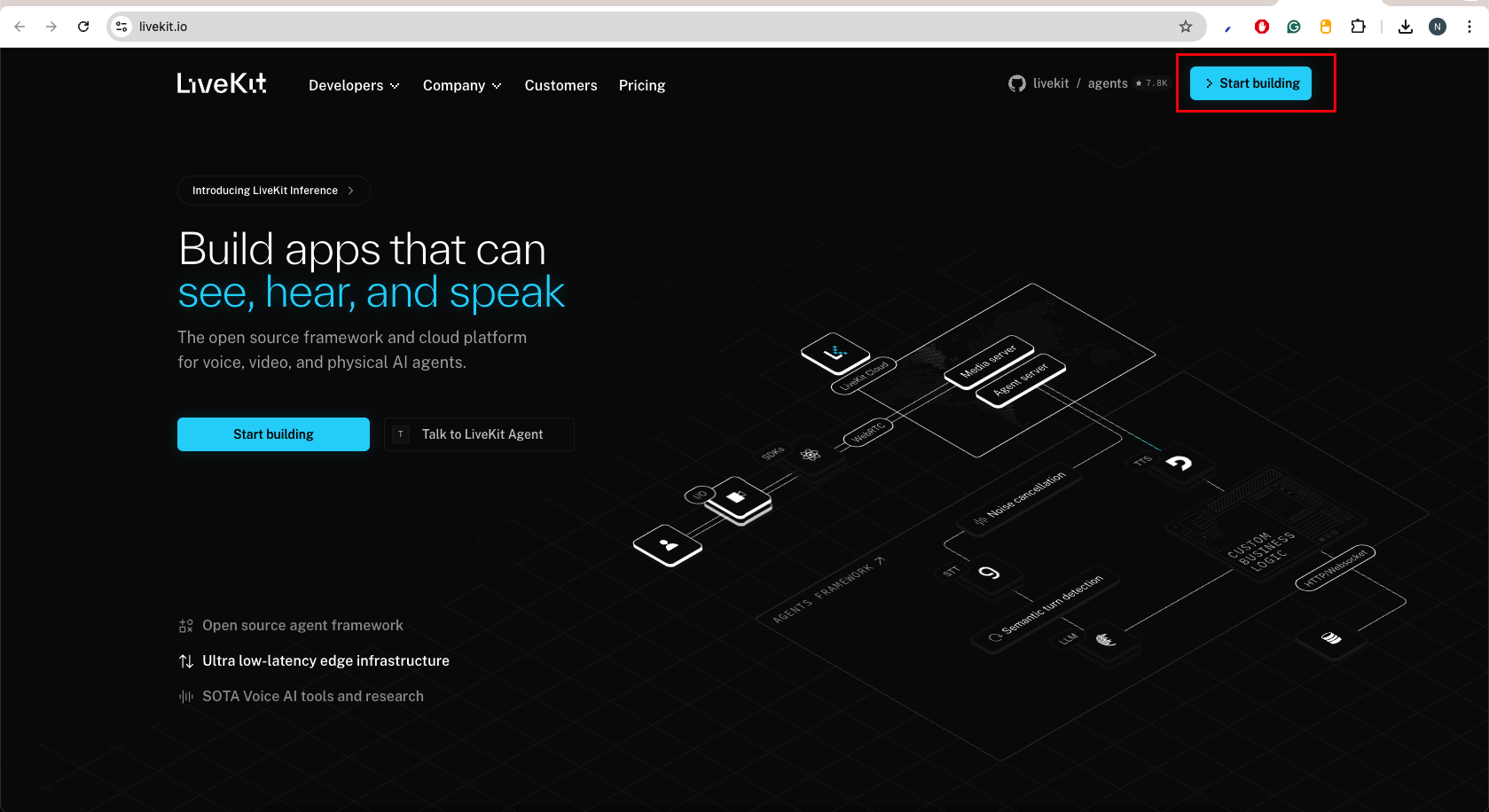 - Navigate to https://livekit.io and click on Start Building.