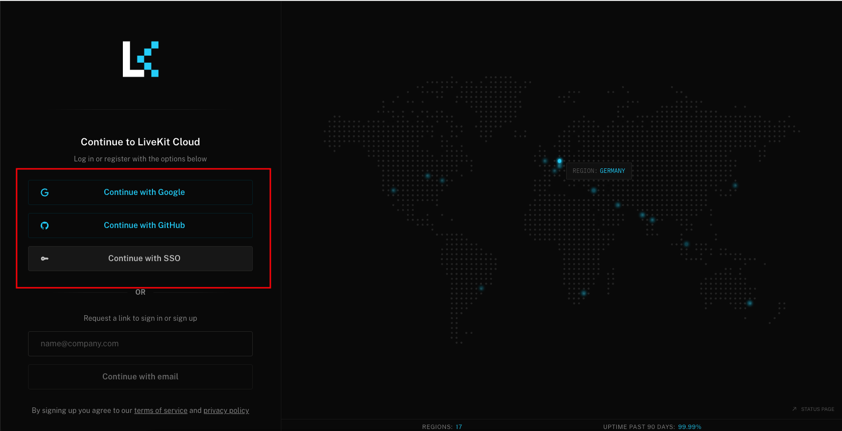 - Access LiveKit Cloud through: https://livekit.io