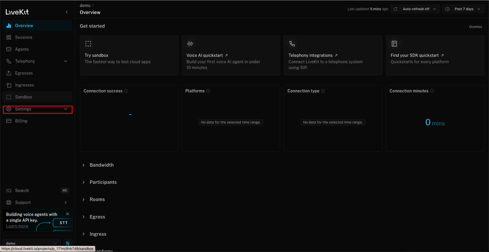 - This will open LiveKit Cloud.