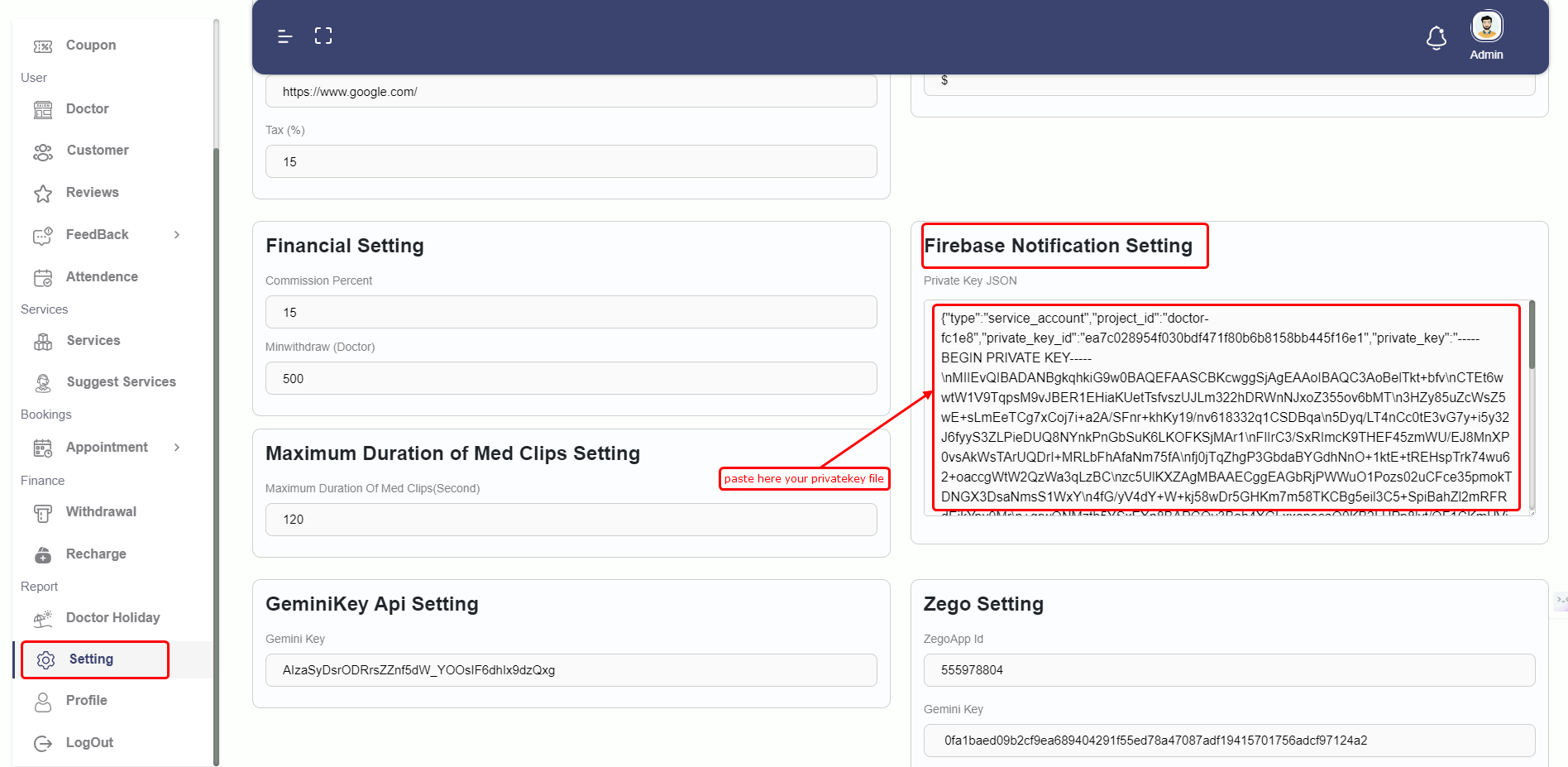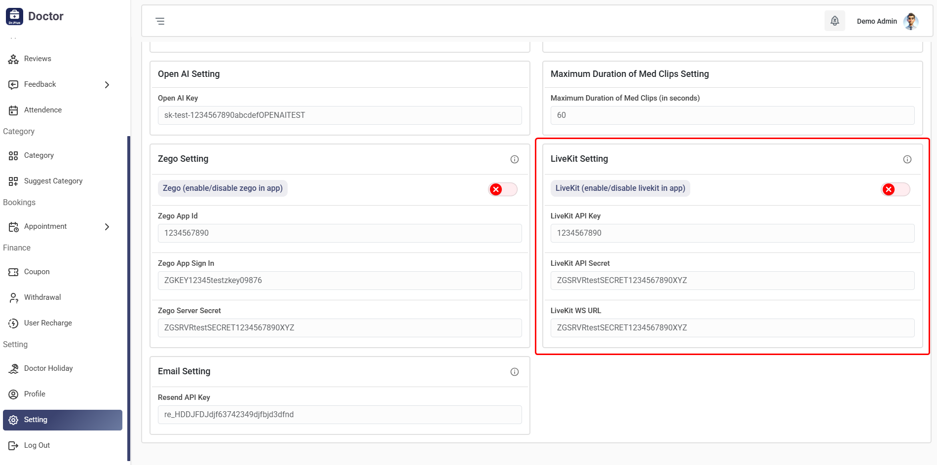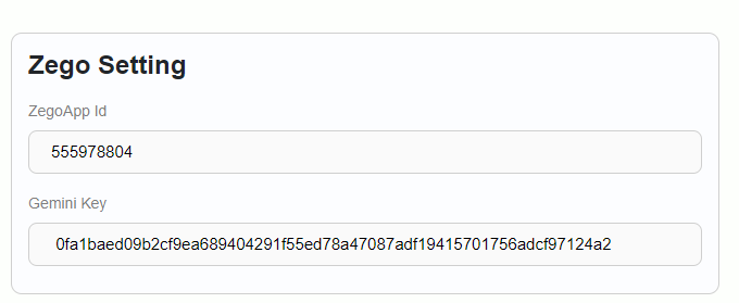 - Enter the Zego Cloud App ID and Zego Cloud App Sign In details in the admin panel under the settings section.