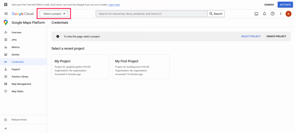 - After that you have to click on Select a project. We’ve included a screenshot below.