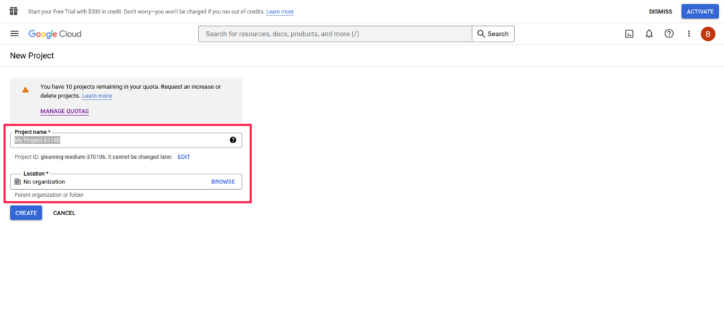 - After clicking on the New Project, a new screen will open in which you have to add the project name and location and then click on the CREATE button. We’ve included a screenshot below.