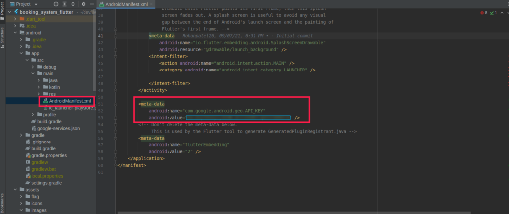 - After that, a dialog will appear in which you can find the API key and add it to your project by following the steps in this Android Configuration.