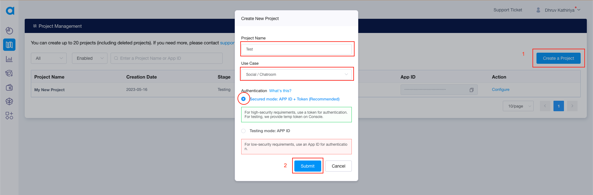 - This process allows you to obtain the App ID and App Certificate for your Agora project from the console.