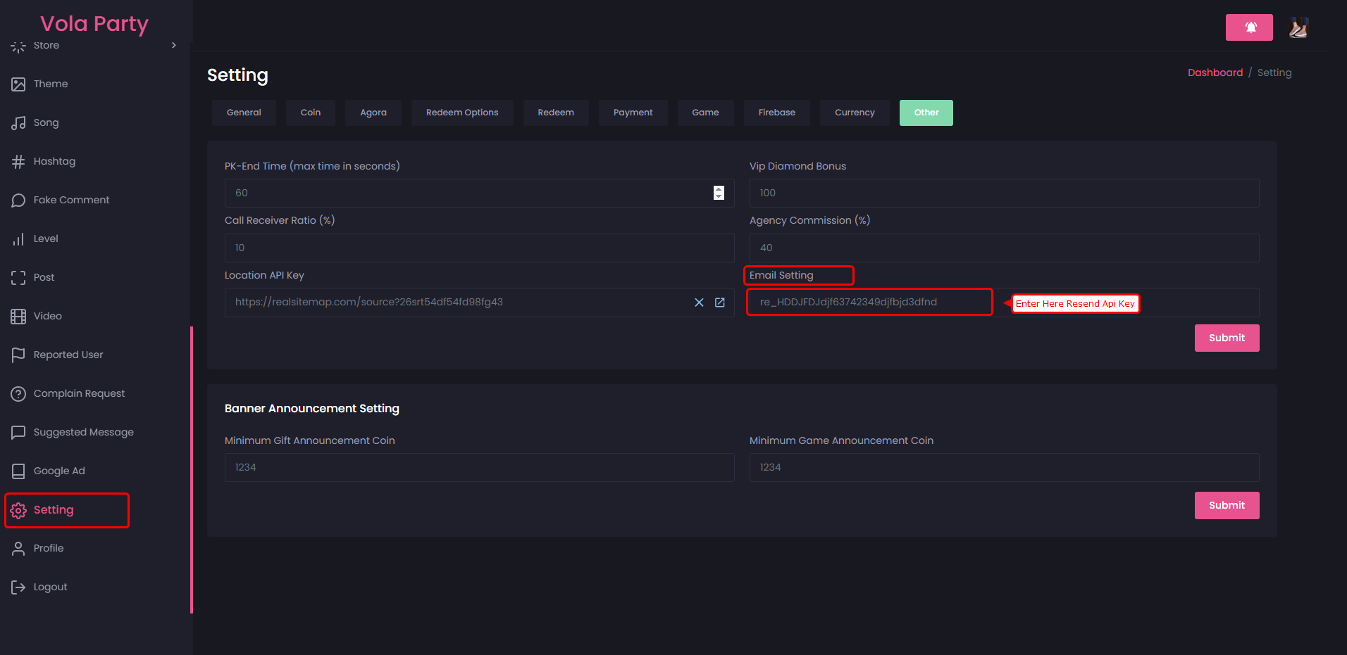 - Once the API key is generated, update it in the settings, as demonstrated in the image below.